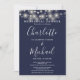 String Lights Navy Blue Script Rehearsal Dinner Invitation