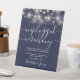 String Lights Navy Blue Unplugged Ceremony Pedestal Sign