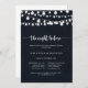 This string lights night before rehearsal dinner invitation is perfect for a rustic event. The design features beautiful hand-painted string lights in a dark blue background.