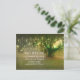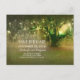 rustic country save the date postcard with old oak tree covered with Spanish moss and hanging strings of lights. Romantic save the date for tree inspired outdoor wedding