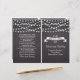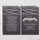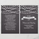 String of lights and vintage banner on chalkboard summer folded booklet style wedding ceremony and party program featuring a white banner with brown outline on chalkboard. This modern and trendy wedding design with vintage elements is part of a wedding set or collection, is fully customisable and is perfect for an outdoor summer night rustic wedding. You will have to fold in the centre to have a folded program. Choose only the value paper type as it folds well.