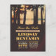 Romantic old fashioned yet modern beach save the date with string of lights or twinkle lights wire hanging on the palm trees.