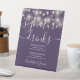 String Lights Purple Wedding Signature Drinks Pedestal Sign