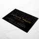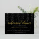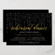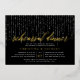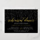 Our rustic elegant rehearsal dinner or cocktail party invitations in chic black and white feature a black background with strings of white lights across the top, and "rehearsal dinner" in chic gold foil calligraphy script typography. Personalise with your ceremony rehearsal and rehearsal dinner details beneath. Includes space for the rehearsal timing and church or venue address.