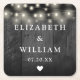 String Lights Rustic Black Wood Boho Barn Wedding Square Paper Coaster