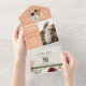 Embrace modern boho elegance with our Rustic Floral Peach Fuzz All-in-One Wedding Invitation. Featuring a personalised monogram, stunning watercolor burgundy flowers in mason jars, delicate string lights, and space for two pictures of the couple, it sets the stage for your special day. Add your photos, website, and QR code for RSVP and more information to create a personalised invitation that reflects your unique love story.
