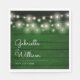 A rustic design featuring pretty string lights and the happy couple's names set in an elegant script above their special date on a rustic emerald green wood panels background. Perfect for weddings, engagements, and anniversary celebrations. Designed by Thisisnotme©