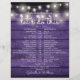 This rustic string lights wedding schedule-timeline can be personalised with your wedding details set in chic white lettering on a purple wood panels background. Designed by Thisisnotme©