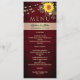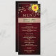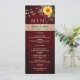 Elevate your fall wedding reception with this rustic wood burgundy wedding menu, blending modern elegance with rustic charm. Designed on rich burgundy paper with a wood-textured look, it features vibrant sunflowers, delicate gold gilded floral lace, and the soft glow of string lights. Perfect for barn, outdoor, or autumn celebrations, this menu adds warmth and romance to your tablescape. Personalise with your wedding meal details to create an unforgettable dining experience your guests will love.