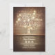 Charming rustic country bridal shower invitation with old carved tree and hanging string of lights. Romantic wooden.