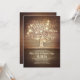 Charming rustic country rehearsal dinner invitation with old carved tree and hanging string of lights. Romantic wooden.