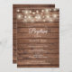 A rustic baptism or christening invitation featuring pretty string lights and your special personalised details set in chic typography on a wood panels background. Designed by Thisisnotme©