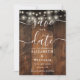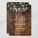 This elegant string lights rustic wood barn boho wedding save-the-date card can be personalised with your information in chic typography. Designed by Thisisnotme©