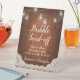 Bubble Send-Off Sign... Sign to instruct wedding guests to take a bottle of bubble solution and blow bubbles as the bride and groom exit the wedding venue! Vintage String Lights Mason Jar Lace Wood Wedding Design. Vintage String Lights Mason Jar Lace Wood Theme has the charm and character of an outdoor summer night. Soft lighting and vignette frame with ecru cream lace doily and firefly jars hanging along a string. Perfect complement to an elegant rustic country string lights themed wedding. String Lights Rustic Wood Script Guest Book Pedestal Sign