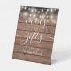 String Lights Rustic Wood Script Cards And Gifts Pedestal Sign