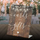This string lights rustic wood script cards and gifts sign is perfect for all celebrations. Designed by Thisisnotme©