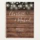 Elegant wedding planner personalised with signature style names on a rustic wood and string lights background. Designed by Thisisnotme©