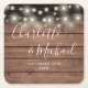 String Lights Rustic Wood Signature Script Wedding Square Paper Coaster