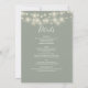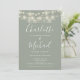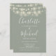 Featuring pretty string lights and signature style names, this elegant sage green wedding invitation can be personalised with all your special wedding day information on the reverse, including your RSVP, accommodation, and additional details. Designed by Thisisnotme©