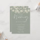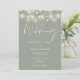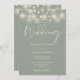 This elegant script sage green wedding invitation, featuring pretty string lights, can be personalized with your information in chic typography with your wedding website details and your QR code on the reverse. Designed by Thisisnotme©