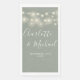Sage green elegant signature wedding design featuring pretty string lights and signature style names. These modern guest paper towels can be personalised with your information in chic white lettering. Designed by Thisisnotme©