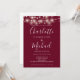 Featuring pretty string lights and signature style names, this elegant burgundy wedding invitation can be personalised with all your special wedding day information on the front, your wedding website details, and your QR code on the reverse. Designed by Thisisnotme©
