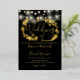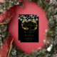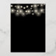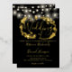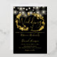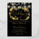 A black and real gold foil wedding invitation featuring pretty string lights and a delicate hand-drawn rustic floral garland of botanical leaf foliage with stylish script typography. Personalize with your special wedding day information. Designed by Thisisnotme©