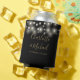 An elegant black and gold wedding favor can cooler featuring pretty string lights, stylish signature script names and special date set in modern typography. Designed by Thisisnotme©