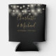 String Lights Signature Script Black Gold Wedding Can Cooler