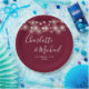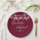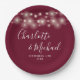 String Lights Signature Script Burgundy Wedding Paper Plate