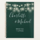 Elegant emerald green wedding planner featuring pretty string lights and signature style names. Designed by Thisisnotme©