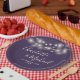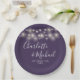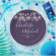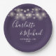 Elegant purple wedding paper plates featuring pretty string lights, signature style names and your special wedding date. Designed by Thisisnotme©