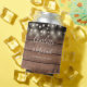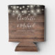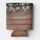 String Lights Signature Script Rustic Wood Wedding Can Cooler
