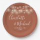 String Lights Signature Script Terracotta Wedding Paper Plate