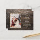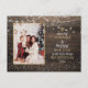 This postcard has all the design quality of a traditional photo card, with the ability to add a handwritten message on the back. This design features a gorgeous rustic wooden background with cute string lights and a subtle snowflake overlay to give it that festive feel. On the left-hand side is your image with a delicate golden border. On the right is some elegant typography in a Christmas tree shape that reads "Merry Christmas & Happy New Year with love from" and then your family name and date.
