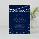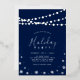 Celebrate the season with this modern foil holiday party invitation. This design features stylish string lights, snowflakes, and typography " Holiday PARTY" on a navy blue background. You can customise all the text, foil colour and background colour. A great design for a chic modern Christmas holiday dinner party, or company business holiday party.