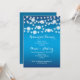 String of lights and white snowflakes blue winter wedding rehearsal dinner invitation featuring white twinkle glowing string of lights with white snowflakes on the top on blue gradient background. This modern and trendy wedding design is part of a wedding set or collection, is fully customisable and is perfect for a winter Christmas wedding. Some elements courtesy of vectorportal.com.