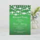 String of lights and white snowflakes green winter wedding rehearsal dinner invitation featuring white twinkle glowing string of lights with white snowflakes on the top on green gradient background. This modern and trendy wedding design is part of a wedding set or collection, is fully customisable and is perfect for a winter Christmas wedding. Some elements courtesy of vectorportal.com.
