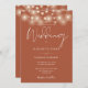 This elegant script terracotta wedding invitation, featuring pretty string lights, can be personalized with your information in chic typography with your wedding website details and your QR code on the reverse. Designed by Thisisnotme©