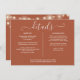 An elegant terracotta wedding details information enclosure card featuring pretty string lights. Personalise with your special event details set in stylish typography with your names and wedding date on the reverse. Designed by Thisisnotme©