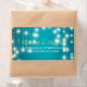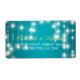 Wedding Address Label Templates - Elegant Lettering Script and Vintage String Lights with Turquoise Blue Glitter Sparkle Background.