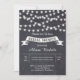 String of lights and vintage banner on chalkboard summer wedding bridal shower invitation featuring white twinkle glowing string of lights on the top and a vintage white banner with black outline on chalkboard or blackboard background. This modern and trendy wedding design with vintage elements is part of a wedding set or collection, is fully customisable and is perfect for an outdoor summer night rustic wedding.