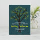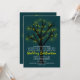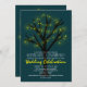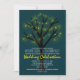 String of Lights Rustic Oak Tree Wedding Invitations with blue-green and yellow colours. The tree design is a bare tree branch silhouette lighted with twinkle lights. These are perfect for an evening wedding or fall or winter wedding.