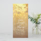 rustic wedding programs features golden lights shining through the tree branches
