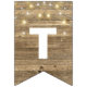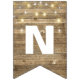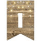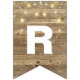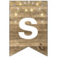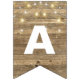 string of party lights on rustic wood bunting