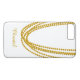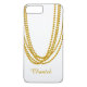 Strings of gold pearls on a white background, decorate this iPhone 7 Plus Case, giving it a classy edge. It is easy to customise with your name, monogram or delete entirely if preferred.