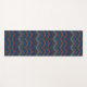 African inspired red and blue zig zag striped art design yoga mat with colourful vibrant art illustration of beautiful multicolored pattern designs. Original, vibrant design to bring joy to your yoga practice.