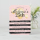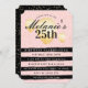 Stripe Black Pink Gold Balloon Birthday Invitation