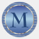 Stripe Blue & Silver Monogram Classic Round Sticker