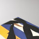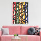 This is a stunning and original abstract painting that features a striped background with black leaves. The painting uses various colours to create the stripes, such as red, green, orange, yellow, blue, and black. The black stripes are thicker and more curved than the other colours, creating a contrast and a sense of movement. The painting also has small black leaves that add texture and depth to the artwork. The painting is completed with a red and black tie or ribbon at the bottom right corner, which adds another layer of detail and complexity. This painting is a versatile and stylish piece that can be used as a wall decor, a t-shirt design, a phone case, or any other product you can think of
